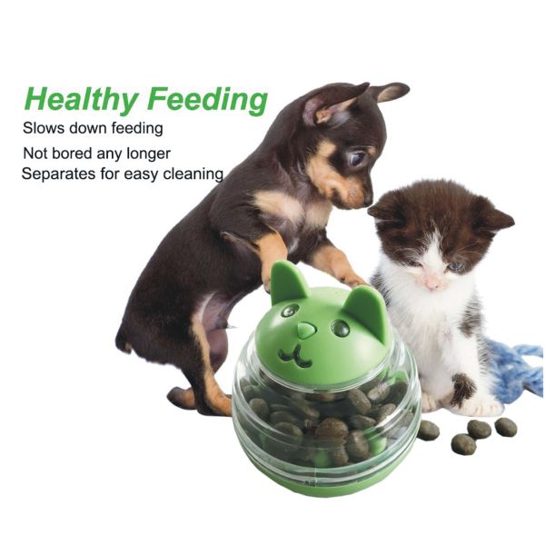 Tumbler make it roll in a small area while playing, the food won’t sprinkled everywhere. And the feeder make cleaning simple.